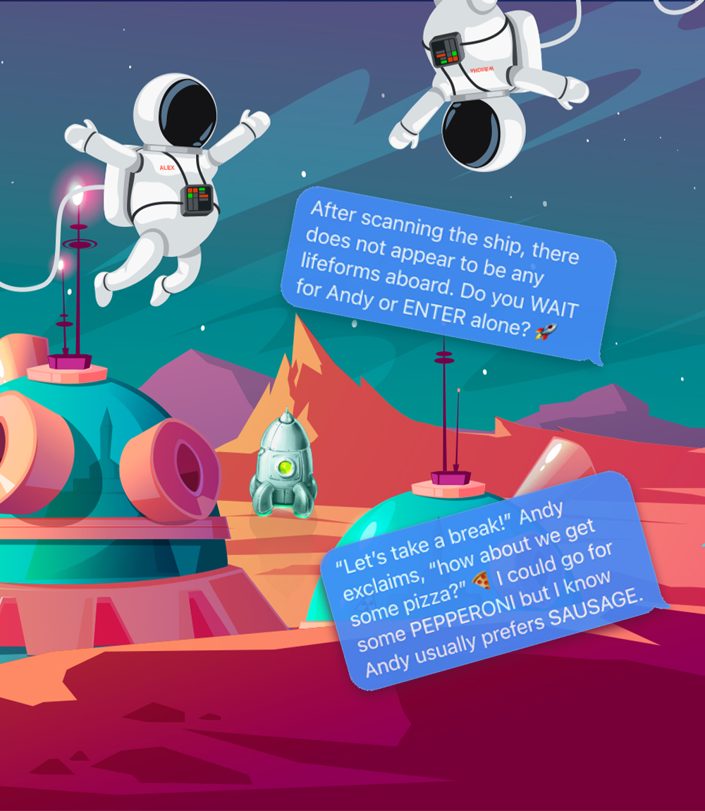 Once complete, Annex's Space Odyssey will be entirely powered by artificial intelligence. The plan is to construct a neural network capable of reading, writing and learning from the player's responses. While still in the very early stages of development, currently the story for the game is statically generated, but still using AI. While writing the story, I am using the OpenAI API to help with all the creative writing. The plan is to complete my own version of the story while simultaneously building the new neural network (as this will be the most difficult aspect of development). Once complete, the player will have a 100% new and unique adventure, every time.